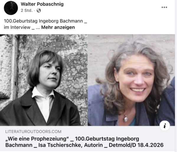 Hier mein Interview mit Walter Pobaschnig zum 100. Geburtstag von Ingeborg Bachmann.