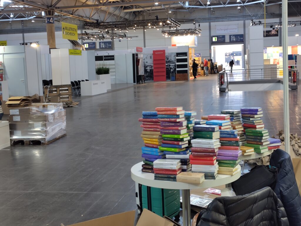 Wenn es nach mir ginge, könnten die Hallen immer so bleiben wie am Mittwoch vor der Eröffnung. Leer und halb aufgebaut finde ich Buchmessen am spannendsten. Wenn die Kisten noch nicht ganz ausgepackt sind und die Aufreger der Messe noch in der Luft liegen.